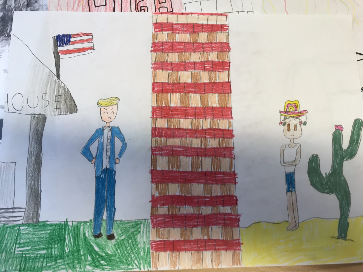 A pupil links the wall to current affairs.