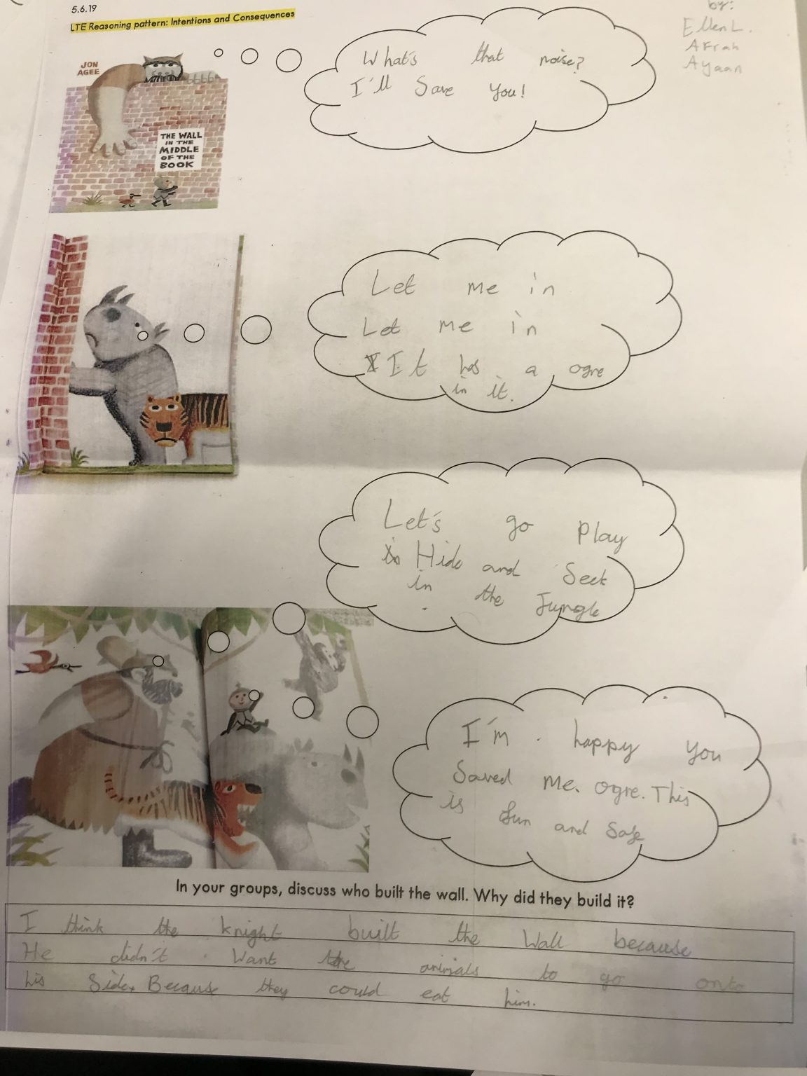 This Let’s Think in English lesson develops pupils understanding of authorial intentions and their consequences on us as a reader through “The Wall in the Middle of the Book” by Jon Agee. Pupils consider why the wall was built and the claims of the knight that it is a good thing and that one side is safer than the other. Pupils are supported to clarify the difference between plot and author message before summarising what they believe the message to be. Pupils are placed in the role of the illustrator and consider alternatives to the ogre and animals and how changes might alter the message of the book.